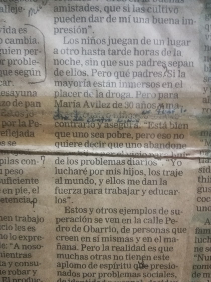 Una noche del mes de julio, una amiga que me hice en la cocina del Clases y Tropa, y que iba saliendo de su turno (11:00 p.m.), me vio sentado en las bancas del Parque del Teatro Nacional, ella se llama Yiya (mamá de los hijos de Camilo Asukita el cantante de Salsa) y al ver que ya era tarde, me preguntó si había comido y le dije que no, pero como ella, al igual que otros compañeros de la cocina, siempre me sacaban una comida, esa noche me dio la suya. Me preguntó además, aún no tienes donde vivir. Le contesté que no, pero que estaba durmiendo en un zaguán en Calle Segunda San Felipe, donde Miguel (Q.E.P.D) el hermano de Pichi, mi amigo, quien me dejaba dormir allí; llevado por conmiseración, tiempo después me permitió dormir dentro de su cuarto.