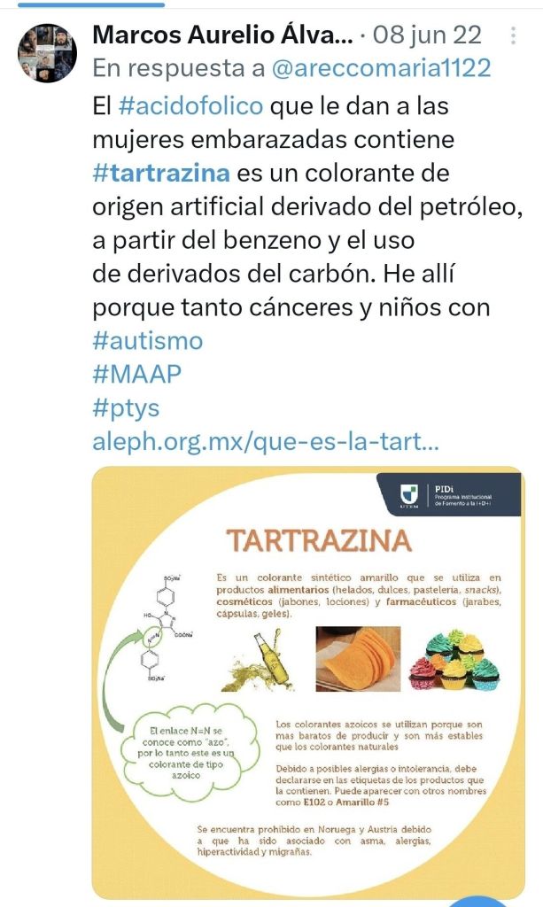 Este artículo está basado en mi experiencia personal, con fines divulgativos y preventivos. Se invita a las autoridades de salud, investigadores, madres gestantes y profesionales médicos a investigar más profundamente los posibles efectos acumulativos de la tartrazina en la población más vulnerable: los niños en formación desde el vientre materno.