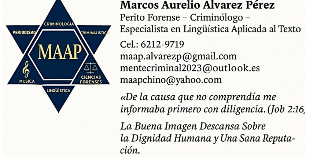 Por: Marcos Aurelio Álvarez Pérez MAAP / Criminólogo, Periodista, Lingüista, Perito Forense Experto en Análisis de Imagen y de Contenido, Bombero y Músico