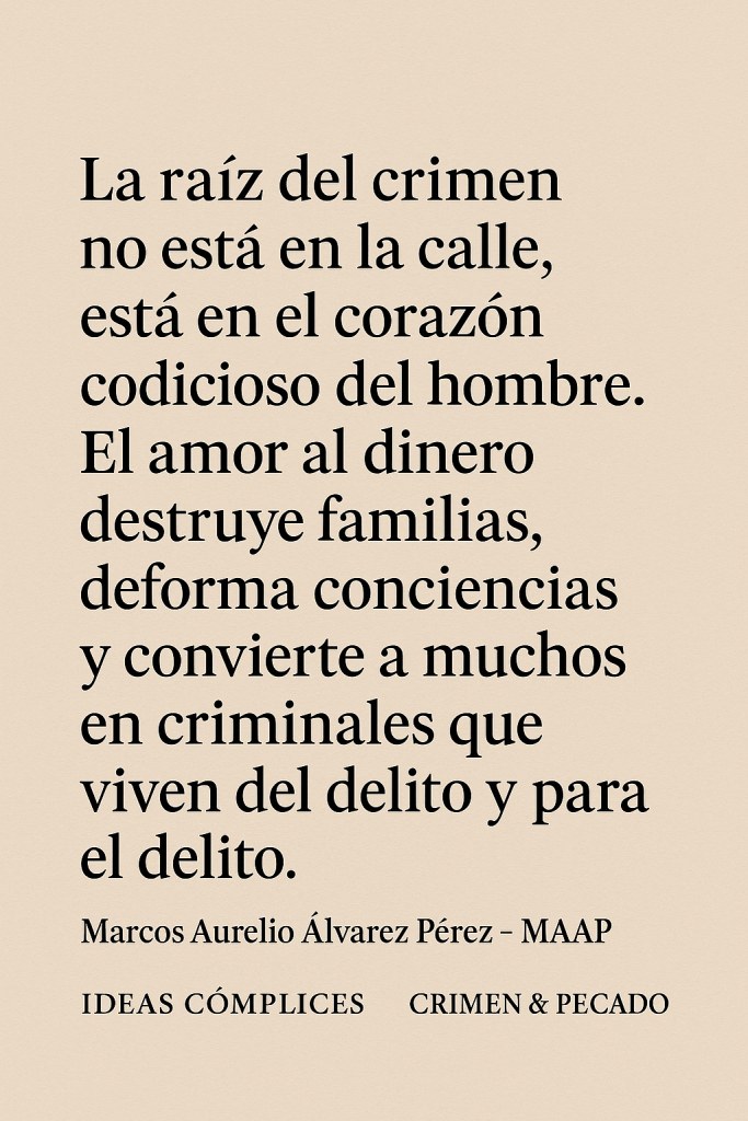 La justicia necesita acuerdos, no ejércitos. Si no aprendemos a convivir como sociedad, si dejamos crecer en nosotros esas emociones malignas -codicia, envidia, vanidad y egolatría- terminaremos construyendo cárceles invisibles en nuestros propios hogares. El crimen callejero y el crimen de las élites nacen de la misma raíz: un corazón sin límites. Sin justicia, la ciudad entera vive presa.