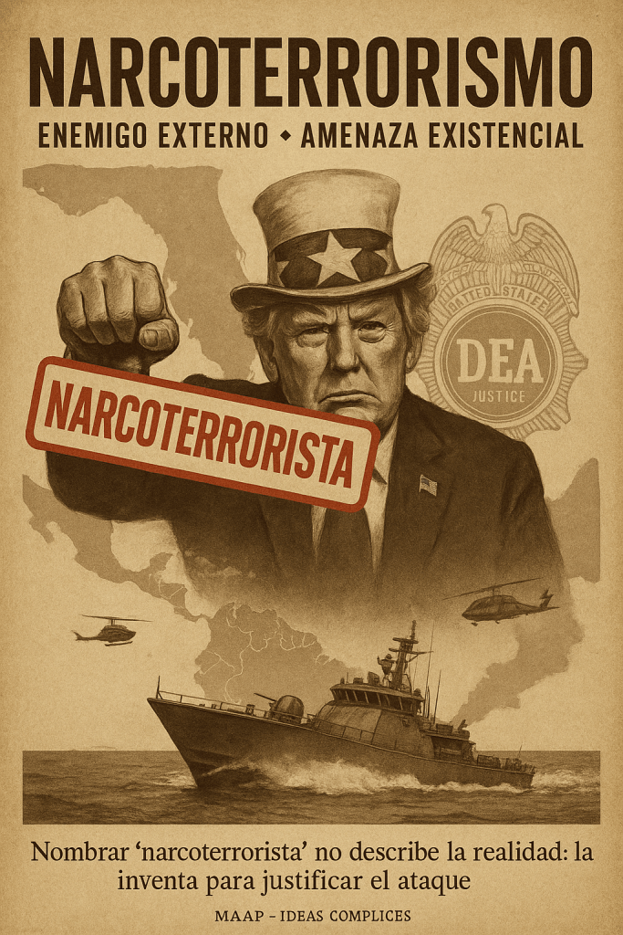 La actual narrativa del “narcoterrorismo”, utilizada para justificar acciones militares en el Caribe, es solo el capítulo más reciente de una historia mucho más profunda: la fabricación del enemigo externo para ocultar el vacío interno.