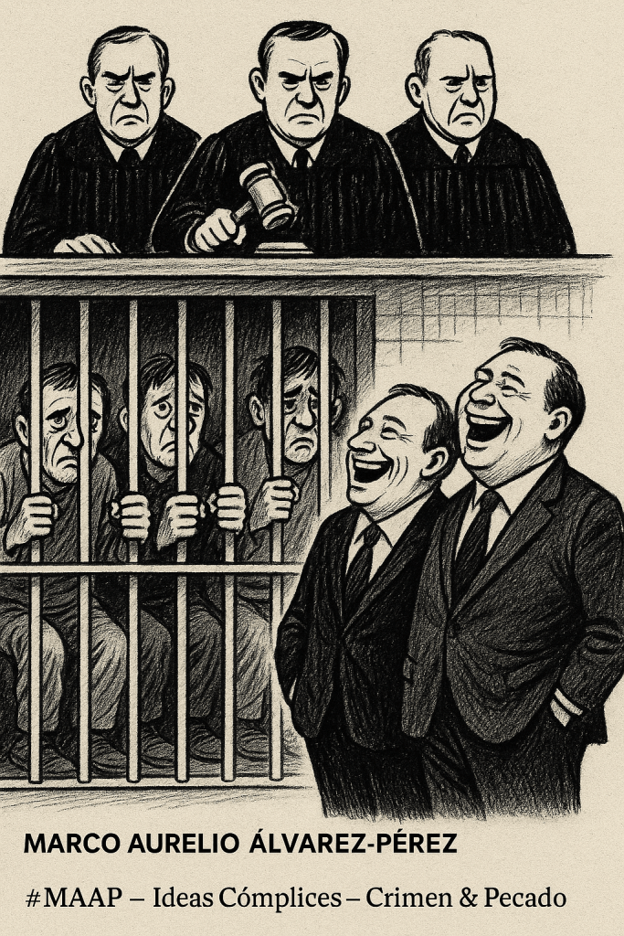 Cuando la impunidad gobierna, la justicia es solo un mueble vacío: los jueces elevan el martillo sobre los pobres, mientras la delincuencia organizada de cuello blanco se ríe frente a las celdas, intacta, intocable y victoriosa. En el país real, la miseria paga cárcel y la corrupción -con traje y tarjeta dorada- cobra intereses. Así se arruina una nación: el crimen es ley y la pobreza es delito.
