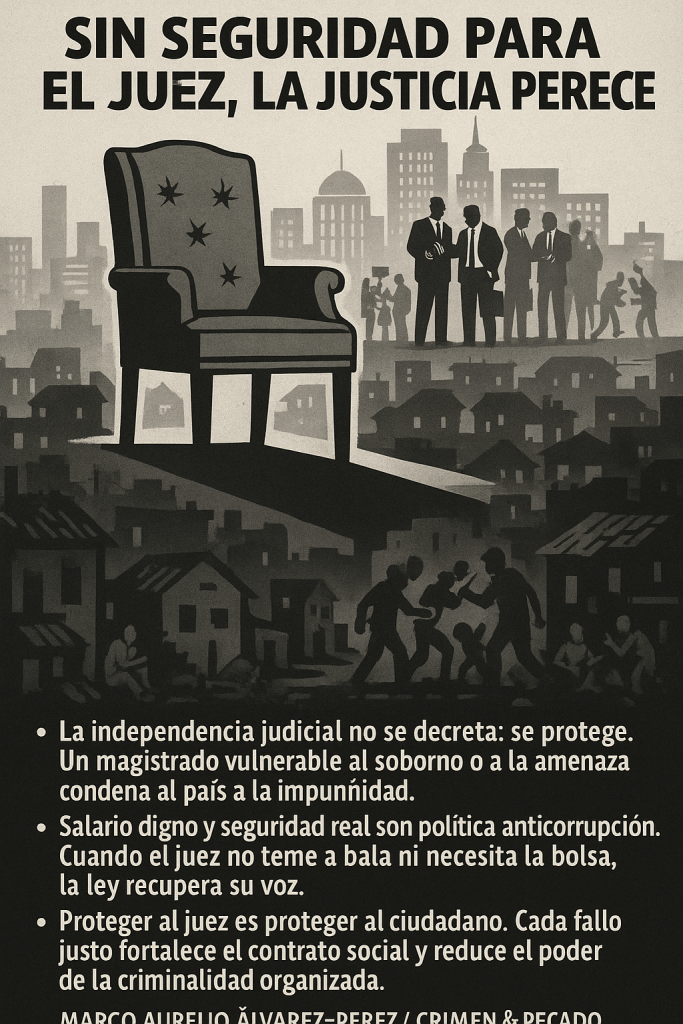 • La independencia judicial no se decreta: se protege. Un magistrado vulnerable al soborno o a la amenaza condena al país a la impunidad.